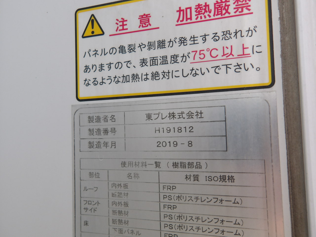 | 上物メーカー | 東プレ R1/8 | 最大積載量 | 1950kg ※あくまでも、車検証上、一時抹消謄本上に記載してある数値です。新規登録時、又は車検時に変更を要する場合があります。 |
