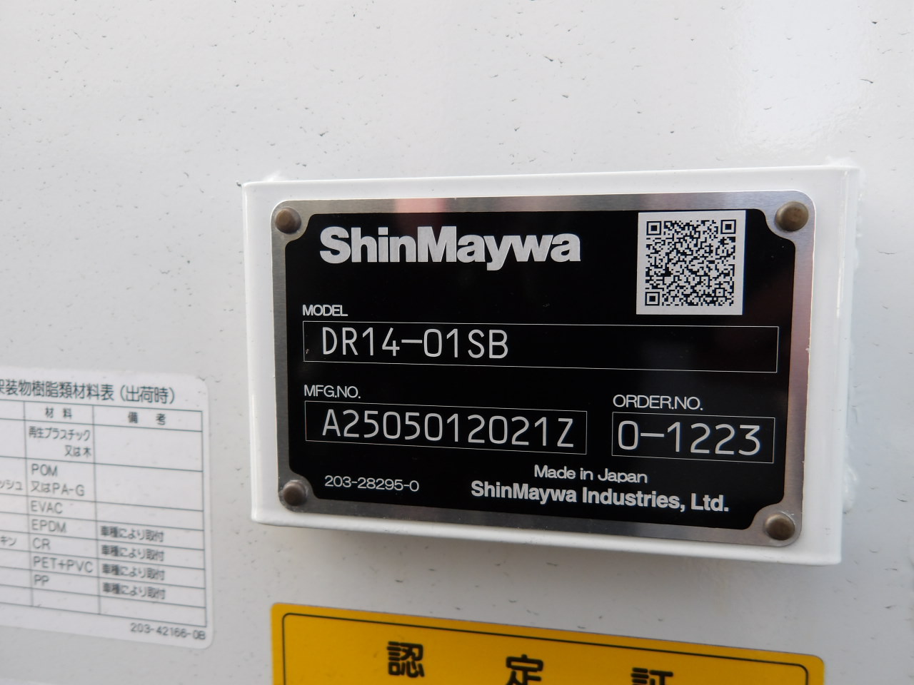 | 上物メーカー | 新明和(DR14-01SB) | 最大積載量 | 10600kg ※あくまでも、車検証上、一時抹消謄本上に記載してある数値です。新規登録時、又は車検時に変更を要する場合があります。 |